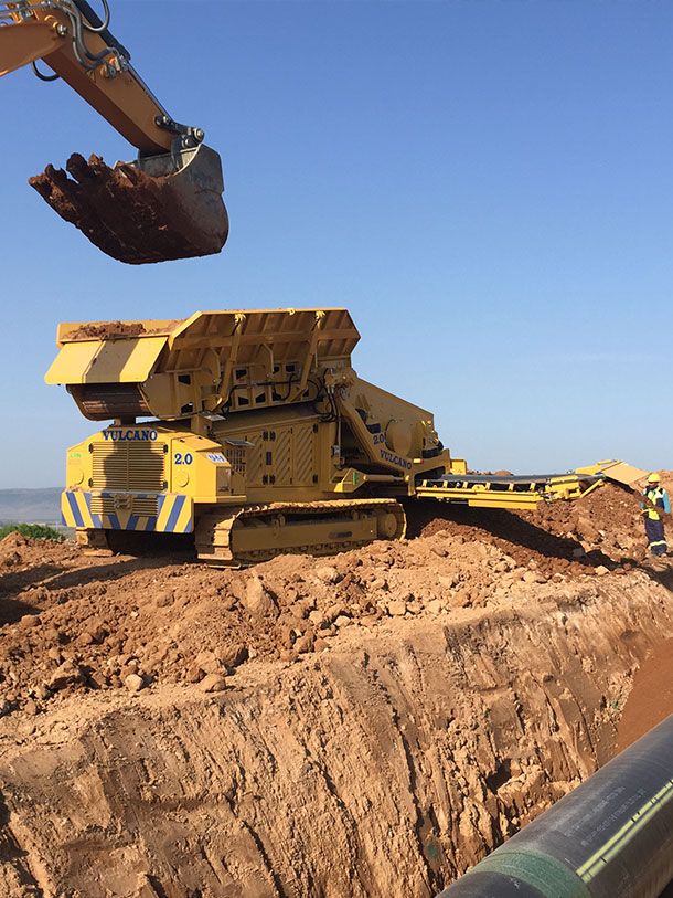 Our Vulcano 2.0 is the best-selling Screening Padding Machine, to be loaded with an excavator, in the Pipeline world. The Vulcano Smart is the more compact and easily transportable version, while the Vulcano XXL is the largest machine in the series, suitable for larger projects requiring high productivity. The Selfloading Superscreen and Superpadder are self-loading screeners that collect material directly from the pile parallel to the excavation.
