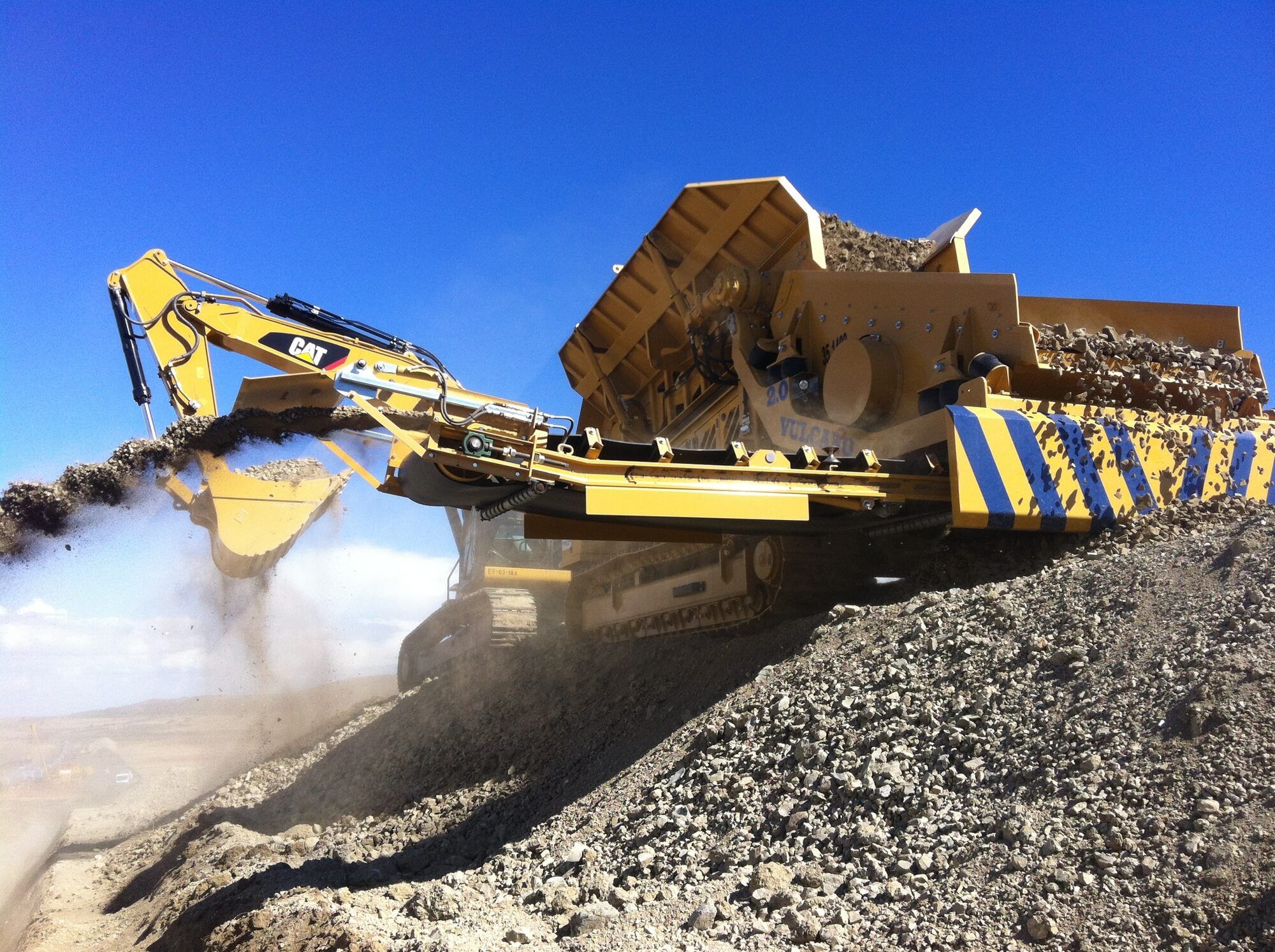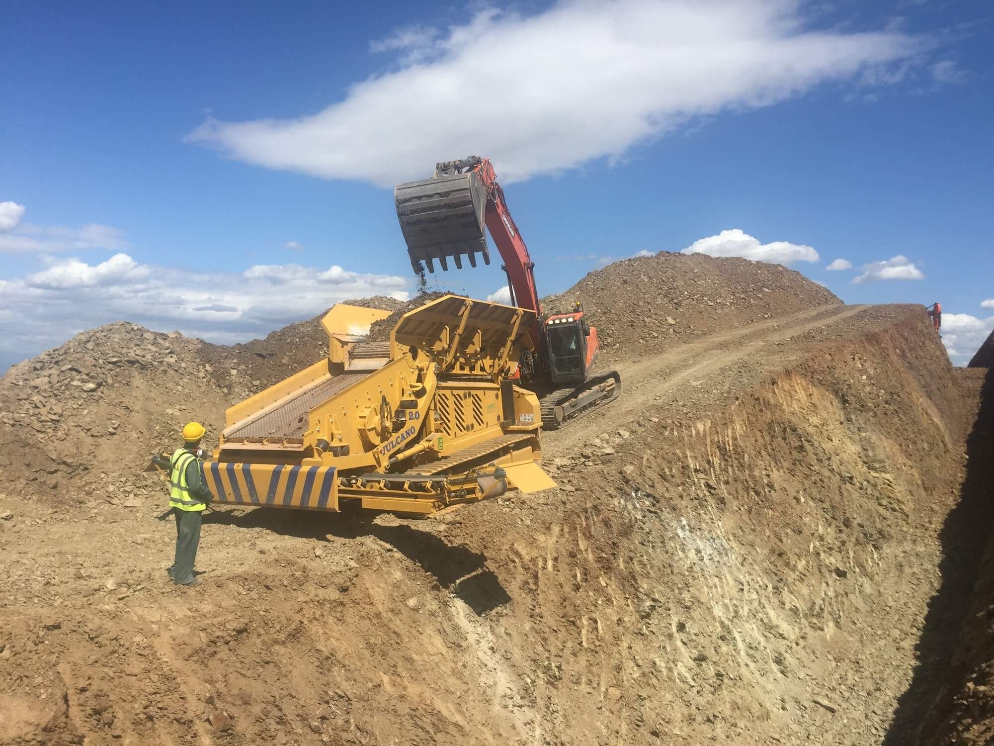 Our radio-controlled vibrating screener is equipped with a hopper with foldable hydraulic sides that optimize space management and facilitate transport, while the plate feeder with adjustable speed makes it perfect for adapting to different operational needs. The interchangeable grids allow for modifying the granulometry of the processed material according to specific requirements, while the transverse and foldable discharge belt enhances operational efficiency, making Vulcano 2.0 a highly innovative and versatile machine for on-site bedding and back-filling operations.