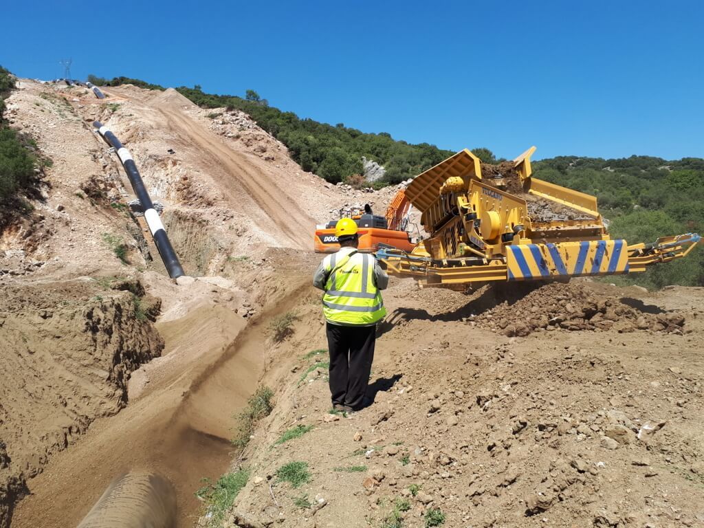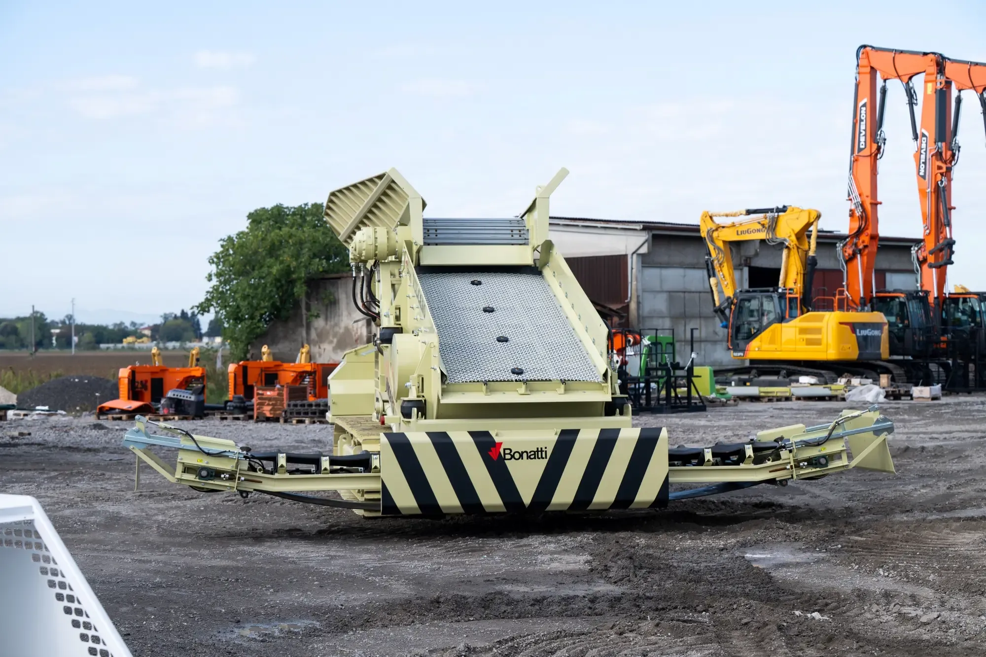 Our radio-controlled vibrating screener is equipped with a hopper with fixed side panels and a width of 250 cm that facilitate transport, while the plate feeder with adjustable speed makes it perfect for adapting to different operational needs. The interchangeable grids allow for modifying the granulometry of the processed material according to specific requirements, while the transverse and foldable discharge belt enhances operational efficiency, making Vulcano Smart a highly innovative and versatile machine for on-site bedding and back-filling operations.