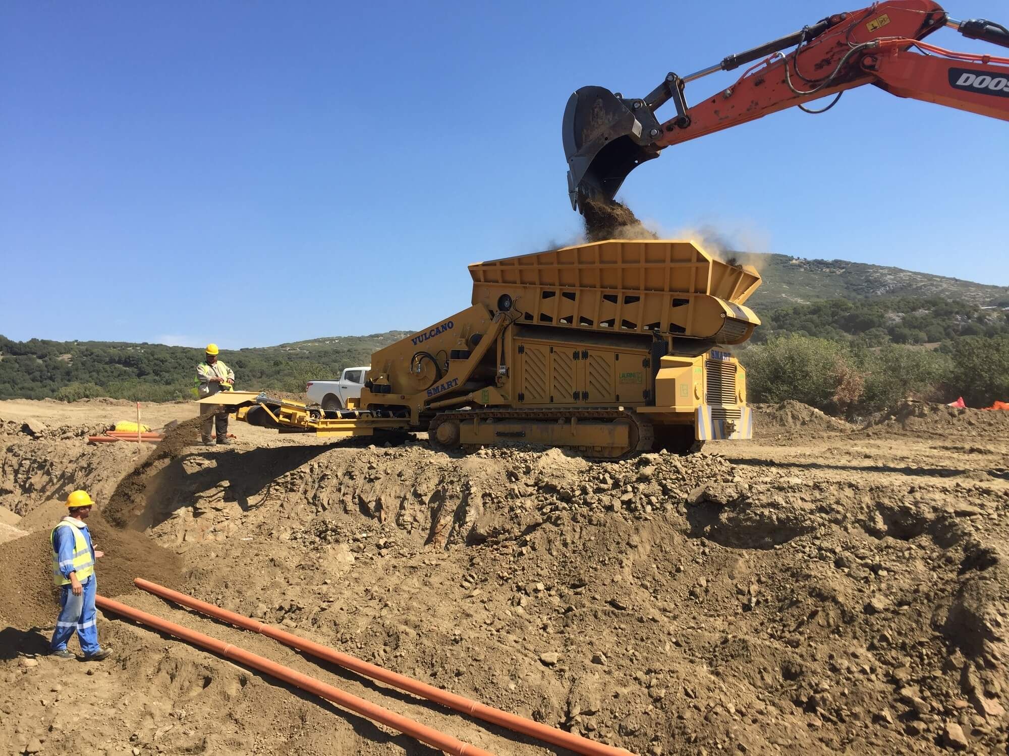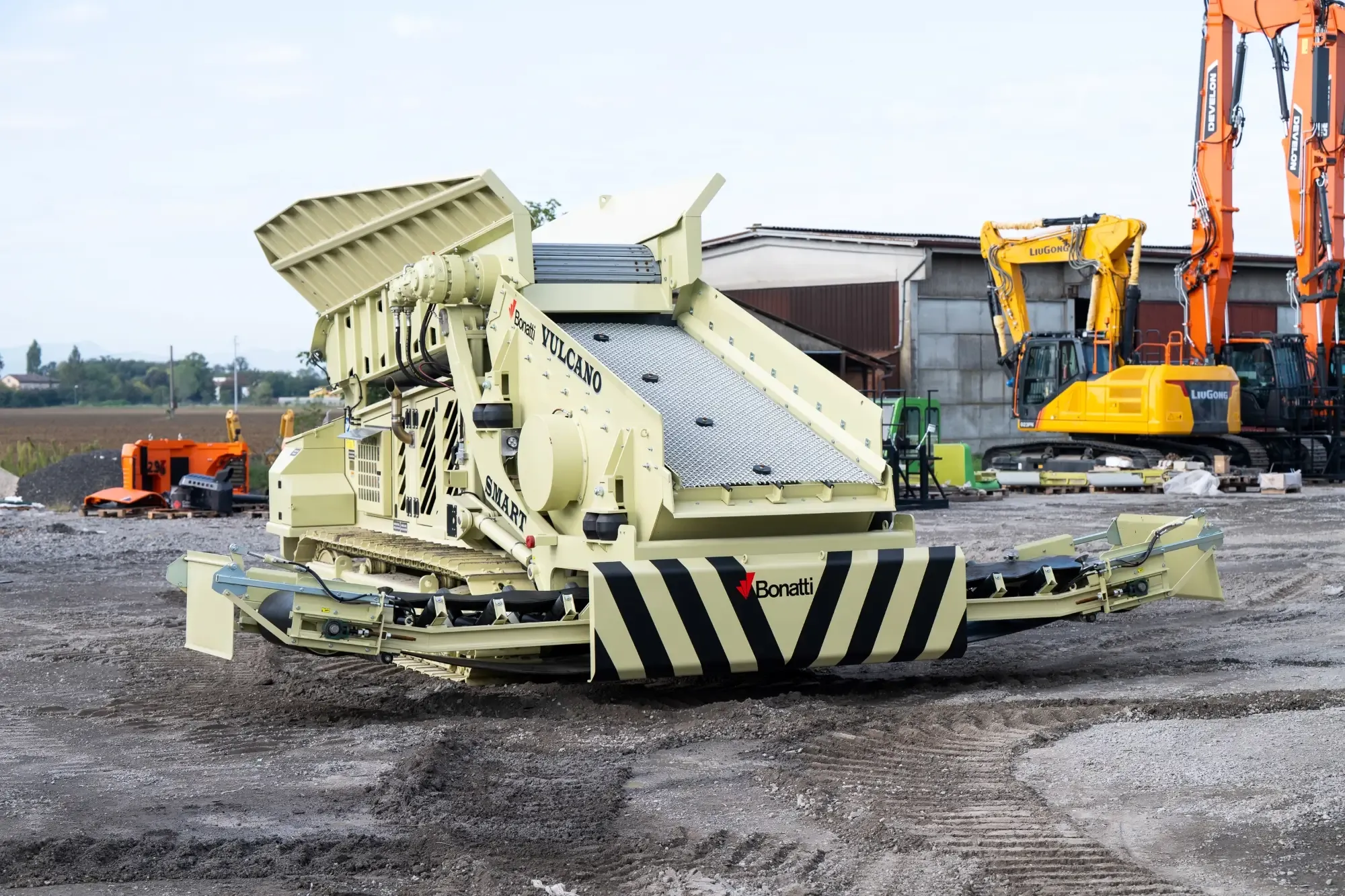 Vulcano Smart is the most compact and easy-to-transport version of Vulcano 2.0, our best-selling machine. The screener mesh is interchangeable, and the plate feeder, with adjustable speed, allows optimal material flow management. The conveyor belt, which deposits the fine material directly into the trench, is retractable to direct the material into the excavation and foldable to facilitate transport. These features, combined with its high reliability, make Vulcano Smart an extremely versatile vibrating screener, suitable for different types of terrain and adaptable to multiple track configurations.