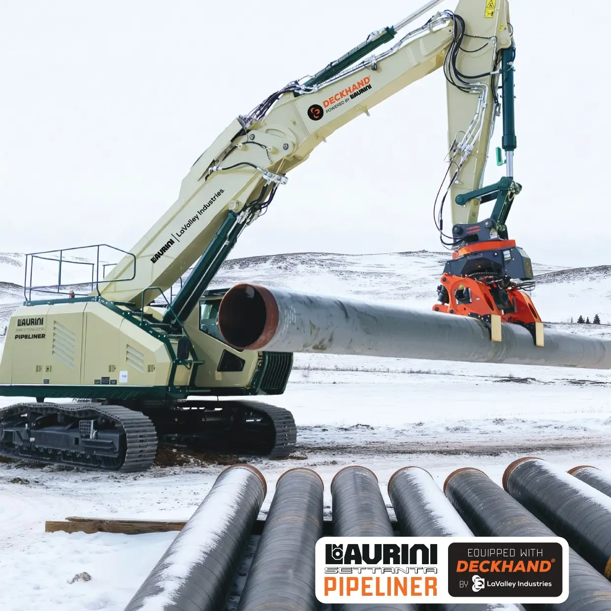 SETTANTA Pipeliner rappresenta la nuova evoluzione delle attrezzature per la movimentazione dei tubi, sviluppato grazie alla collaborazione tra Laurini e LaValley Industries. A differenza di escavatori e bulldozer, macchine originariamente progettate per scavare o spingere e successivamente adattate al sollevamento, SETTANTA Pipeliner è stata progettata fin dall’inizio specificamente per le operazioni di pipeline.