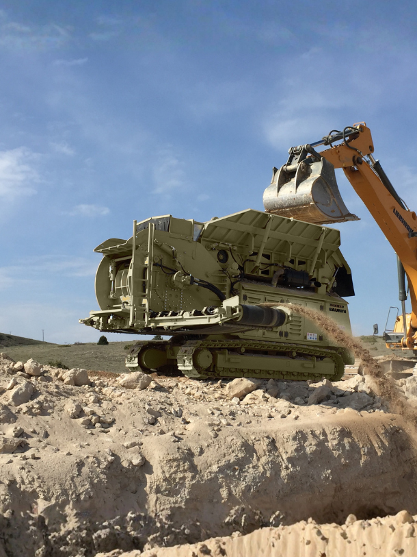 Abbiamo sviluppato e brevettato un mulino a martelli, utilizzato in tutti modelli di frantumatrici semoventi. Questo sistema permette di ridurre di venti volte la pezzatura in ingresso in una sola passata. I modelli Grub sono stati realizzati per essere utilizzati direttamente sul fondo dello scavo per creare il letto di posa. L’Hammer si muove lungo lo scavo e completa il rinterro ricoprendo il tubo di materiale fine.