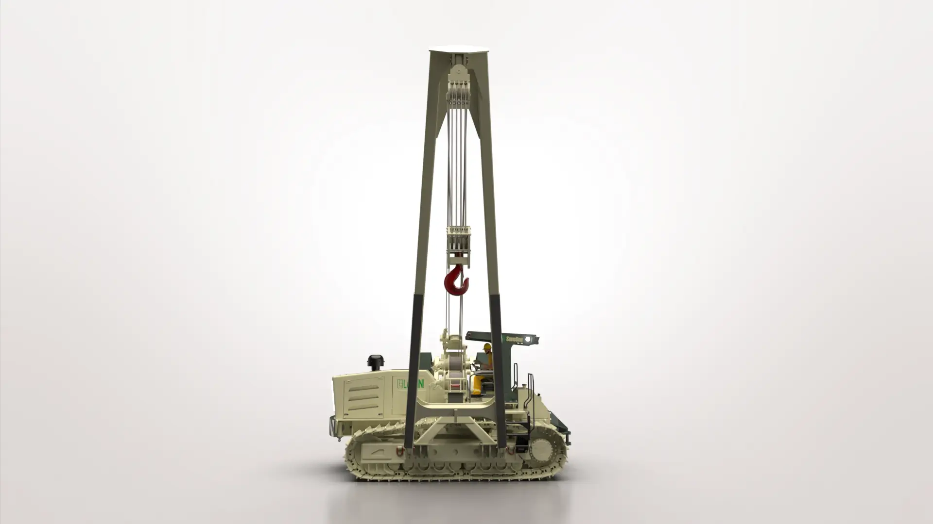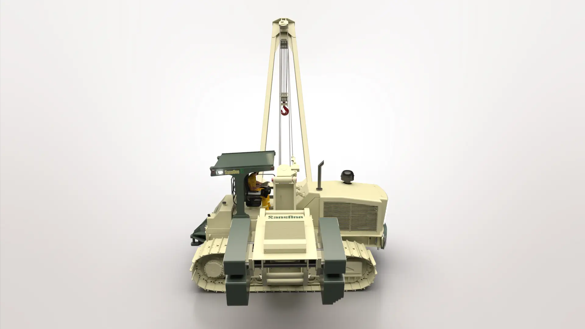 SansOne 100 è il nostro posatubi più grande ed è caratterizzato dai due longheroni del sottocarro smontabili per mezzo di spine idrauliche e le dimensioni di tutti i componenti idonee per il trasporto in container. È una macchina equipaggiata con tutte le più recenti tecnologie e grazie al suo basso baricentro di 90 centimetri da terra, vanta la migliore stabilità. Il sedile ruota insieme a tutti i comandi posizionati sui braccioli e permette all’operatore di lavorare senza dover girare il collo. La macchina è dotata di protezione ROPS, nella quale può essere montata una cabina chiusa ad ampia visibilità, con riscaldamento e aria condizionata. Il sistema di antiribaltamento integrato elabora la posizione del contrappeso adeguando la relativa capacità di sollevamento visibile su un display da 12”. Il motore è montato con il volano in avanti, permettendo così il libero accesso al gruppo delle pompe idrauliche per facilitarne la manutenzione. Abbiamo posizionato lo scambiatore di calore del motore sul lato sinistro della cofanatura per abbassare il cofano motore e aumentare la visibilità frontale.