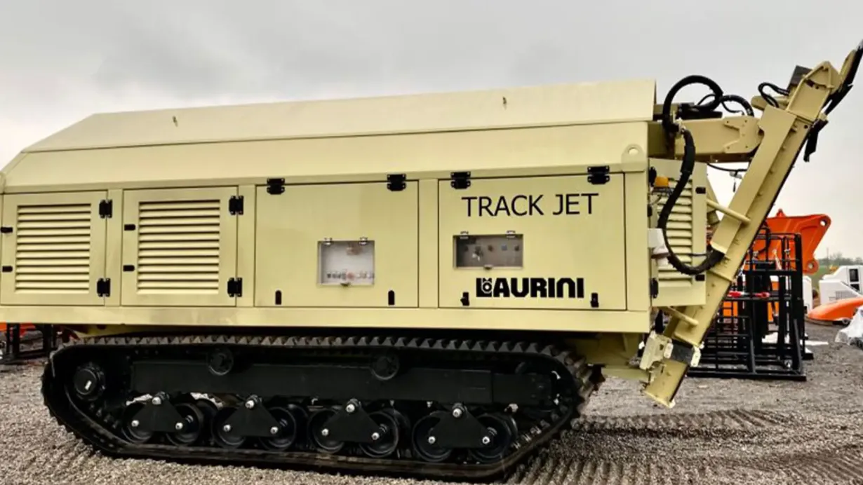 Track-Jet è una macchina completamente elettrica e telecomandata con cingoli in gomma, dotata di un braccio telescopico montato su una ralla, la quale può lavorare seguendo la volta del tunnel fino a 8 metri di raggio. È dotata di un meccanismo porta ugello oscillante che permette al getto d’acqua ad alta pressione di agire su un arco ad ampio raggio.