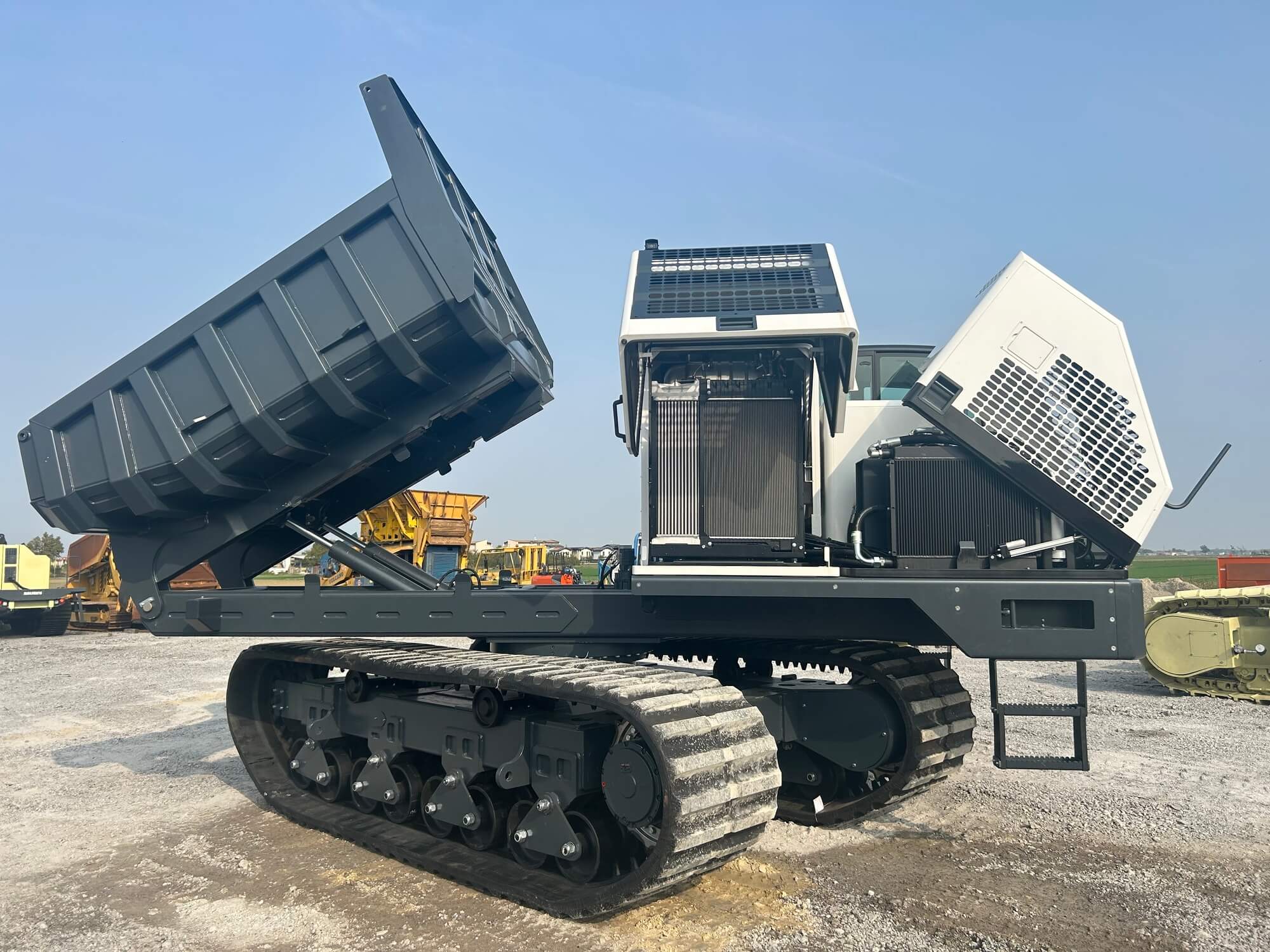 MRT 250 and 300 are rubber-tracked dumpers designed to move in any terrain condition and transport aggregates of any type. The tipping body made of Hardox steel is extremely robust and wear-resistant. The air-conditioned cabin with an adjustable ergonomic seat ensures maximum comfort for the operator; the joysticks allow for intuitive and precise control.