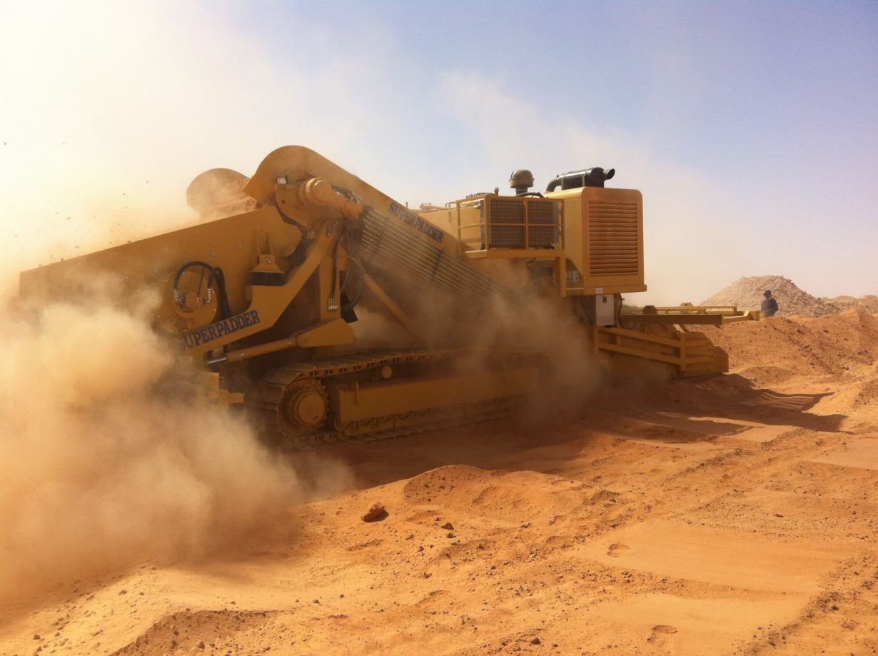Superpadder is the largest model in our range of vibrating screeners, typically used in large projects and suitable for terrains with regular morphology. This self-loading machine boasts a screening surface of 7 m² and a feed opening 3.6 meters wide, with a production capacity of up to 400 m³/h of screened material. The screener mesh is interchangeable to obtain different material granulometries according to work requirements. The remote control allows the operator to simultaneously monitor the incoming material and the fine material discharged via the conveyor belt into the trench, ensuring excellent visibility and safety.