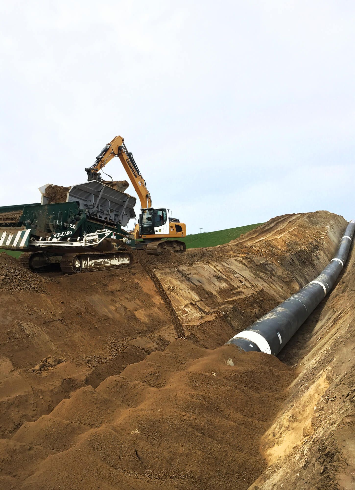 Vulcano 2.0 is the best-selling radio-controlled mobile screener, to be loaded with an excavator, in the Pipeline world. The screener mesh is interchangeable, and the plate feeder, with adjustable speed, allows optimal material flow management. The conveyor belt, which deposits the fine material directly into the trench, is retractable to direct the material into the excavation and foldable to facilitate transport. These features, combined with its high reliability, make Vulcano 2.0 an extremely versatile solution, suitable for different types of terrain and adaptable to multiple track configurations.