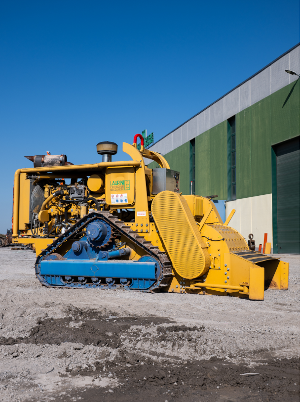 Abbiamo sviluppato e brevettato un mulino a martelli, utilizzato in tutti modelli di frantumatrici semoventi. Questo sistema permette di ridurre di venti volte la pezzatura in ingresso in una sola passata. I modelli Grub sono stati realizzati per essere utilizzati direttamente sul fondo dello scavo per creare il letto di posa. L’Hammer si muove lungo lo scavo e completa il rinterro ricoprendo il tubo di materiale fine.