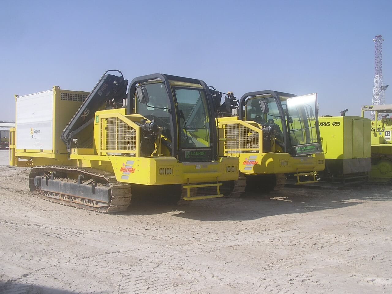 Muletrax 3000 è un trattore cingolato multifunzione, progettato per fornire supporto essenziale durante diverse fasi lavorative come la saldatura, la sabbiatura, e il rivestimento dei giunti, oltre a molteplici altre applicazioni. La posizione centrale della cabina permette il trasporto di tubi di grosso diametro grazie a selle laterali ripiegabili idraulicamente. La capacità di adattamento di questo pianale cingolato lo rende particolarmente versatile in tutte le condizioni di terreno, assicurando efficienza operativa in contesti altrimenti inaccessibili.